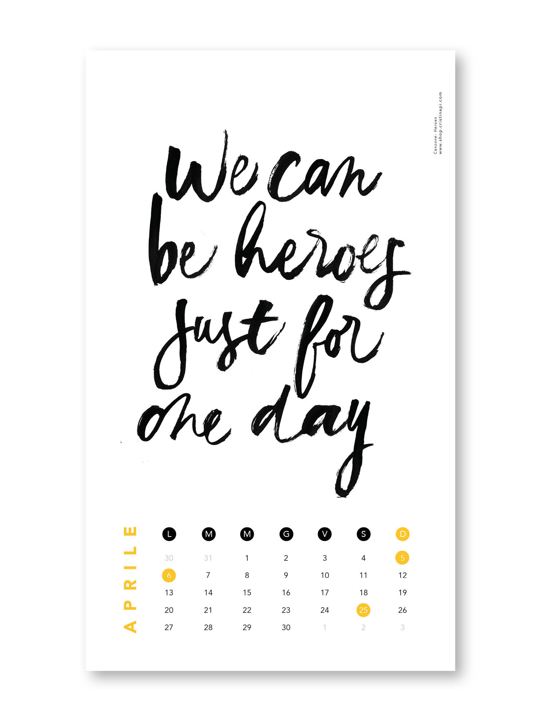 Calendario 2026 Dimensione 25×42 cm Stampa digitale su Fedrigoni Arena 300gr Spirale nera