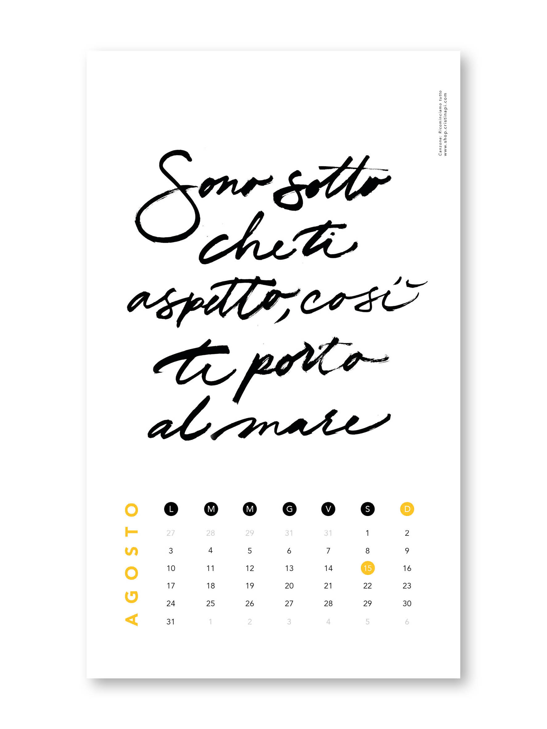 Calligrafia e design: Cristina Pi